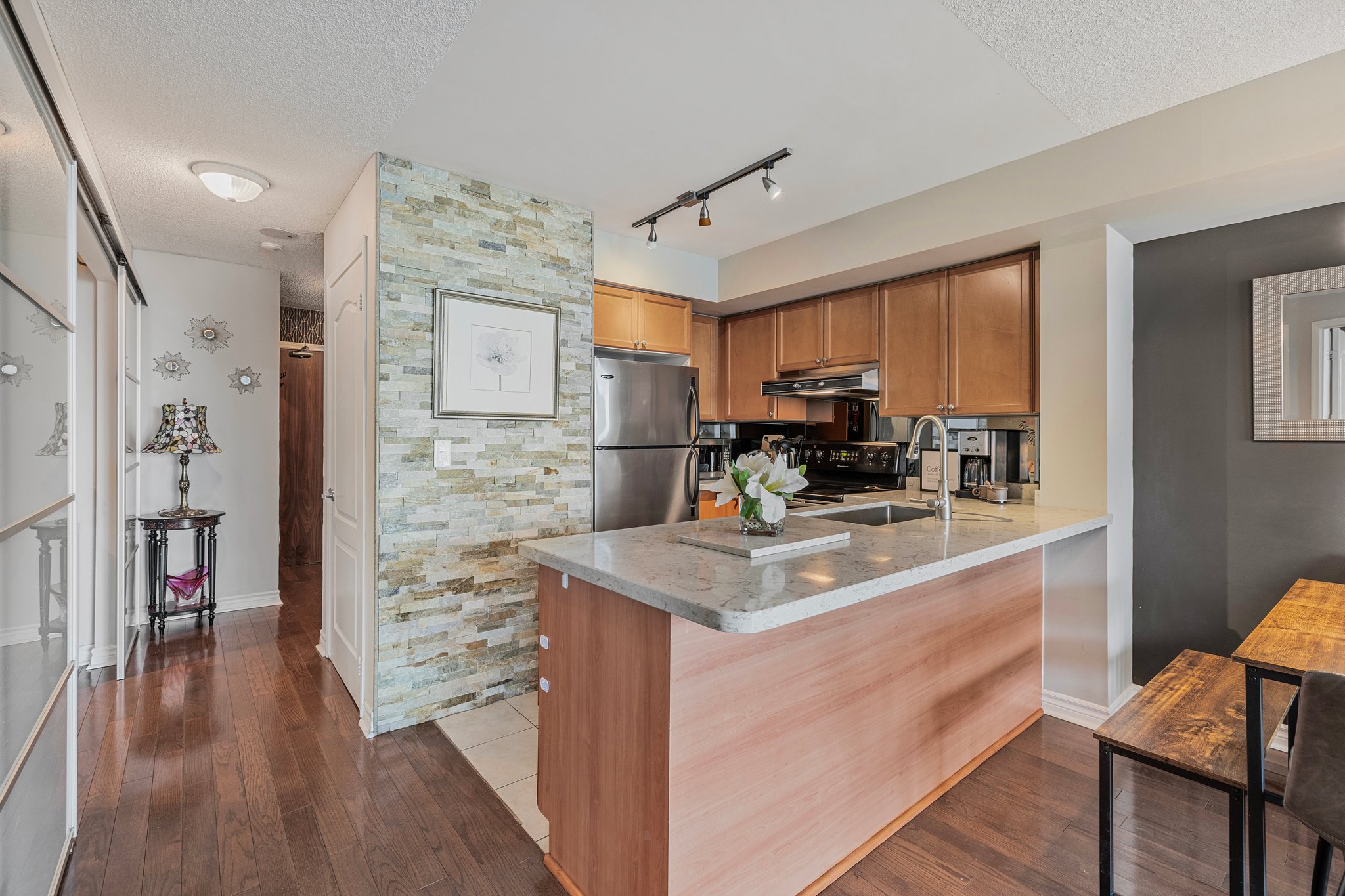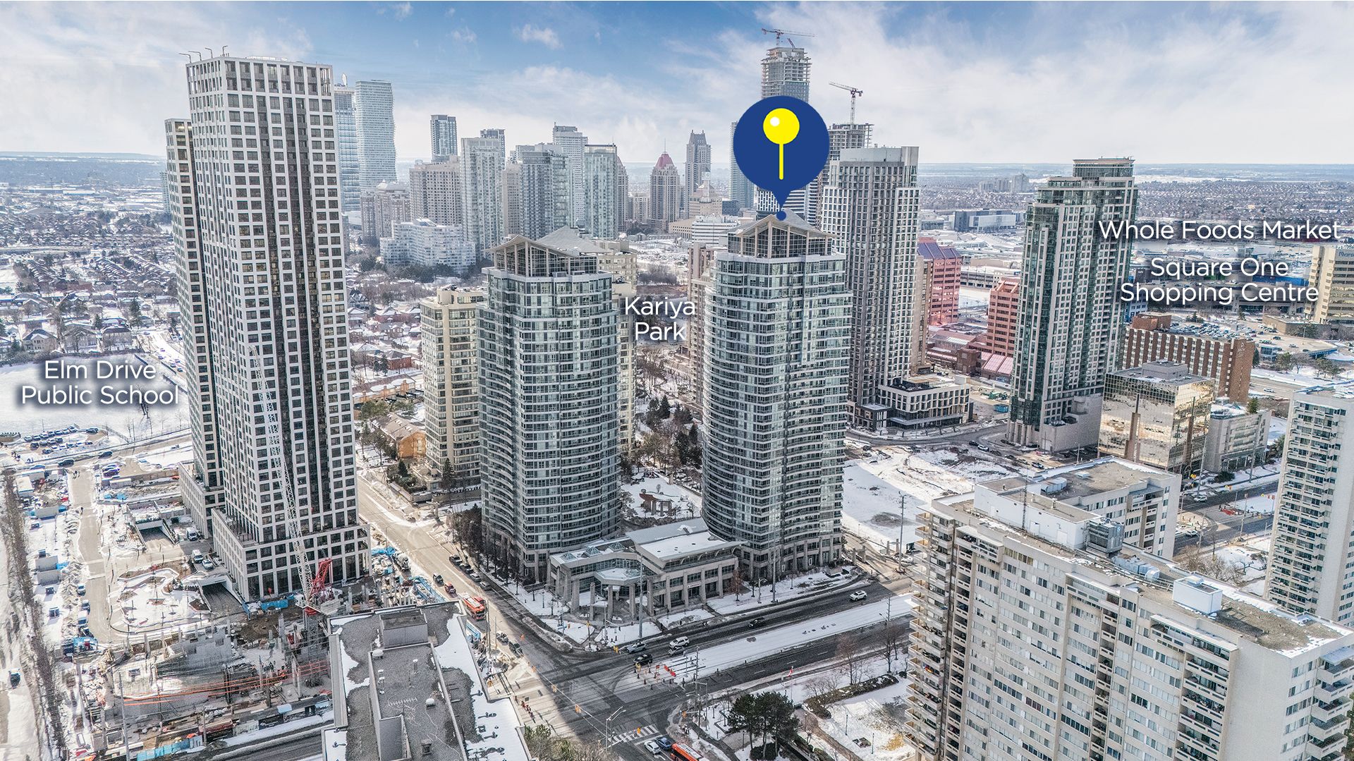 The Best Purchase In The Building!! Exceptional Value for This 1 + 1 With 2 Full Bathrooms. Appreciate Maintenance Free Living In the Heart Of Mississauga & Resort Style Amenities For All To Enjoy. Welcoming Front Foyer Leads To Open Concept Layout With Gleaming Hardwood Floors Throughout. Spacious Kitchen With Stainless Steel Appliances, Granite Counters, & Ample Storage Space. Combined With Dining Area, Living Room Has Floor To Ceiling Windows, & Walk-Out To Oversized Balcony, Perfect For Entertaining Friends & Family, Or Spending A Relaxing Morning Embracing The Fresh Air. Primary Bedroom Features 4 Piece Ensuite Bathroom, Large Closet, & Hardwood Flooring. Bonus Den Has Sliding Doors & Is Perfect For Working From Home, Or Easily Used As A Secondary Bedroom With An Additional Full 3 Piece Bathroom In Front Foyer! Convenient Ensuite Laundry. 1 Underground Parking Space & Locker For Additional Storage! Maintenance Fees Include Water, Heat, Building Insurance, Parking, & Common Elements. Top Of The Line Amenities Include Indoor & Outdoor Pools, Sauna, Steam Rooms, Sports Room With Pickle Ball Table, Conference / Dining Room, Theatre Room, Lounge Area, Playground, Gym, Yoga Room, Foosball Tables, Party Room, & 24 Hour Security! Prime Location Within Walking Distance To Square One Mall, Groceries, Celebration Square, Kariya Park, Community Centre, & Public Transit With The New LRT System Running Directly In Front Enhancing Convenience! Great Unit For First Time Buyers Or Investors With Very Safe Community Surroundings!